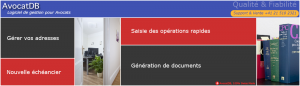 Liste des fonctions Avocatdb 2 AvBox 2 Fonctions générales : Notes, tâches Echéancier pours suivre vos note d’honoraires Statistiques Fax (liste des fax reçus avec prévisualisation) Appels, liste des appels, émis, reçus, manqués, sur répondeur. Gestion des parties : Carnet … Lire la suite de Principales fonctionalités